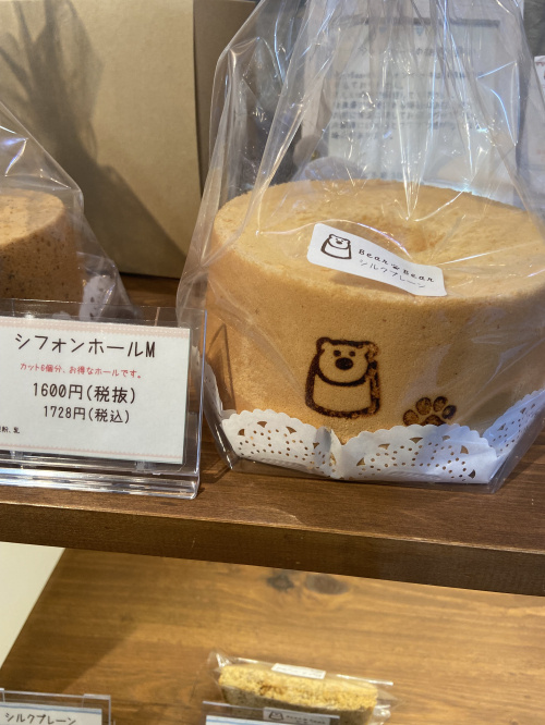 ホールサイズのシフォンケーキにはクマちゃんの刻印も♪